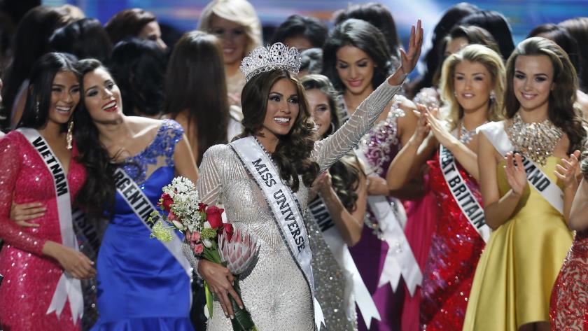 In the excitement just after the announcement, the tiara fell off Isler’s head as she was being crowned by Miss Universe 2012, Olivia Culpo of the United States. Isler caught the crown laughing.