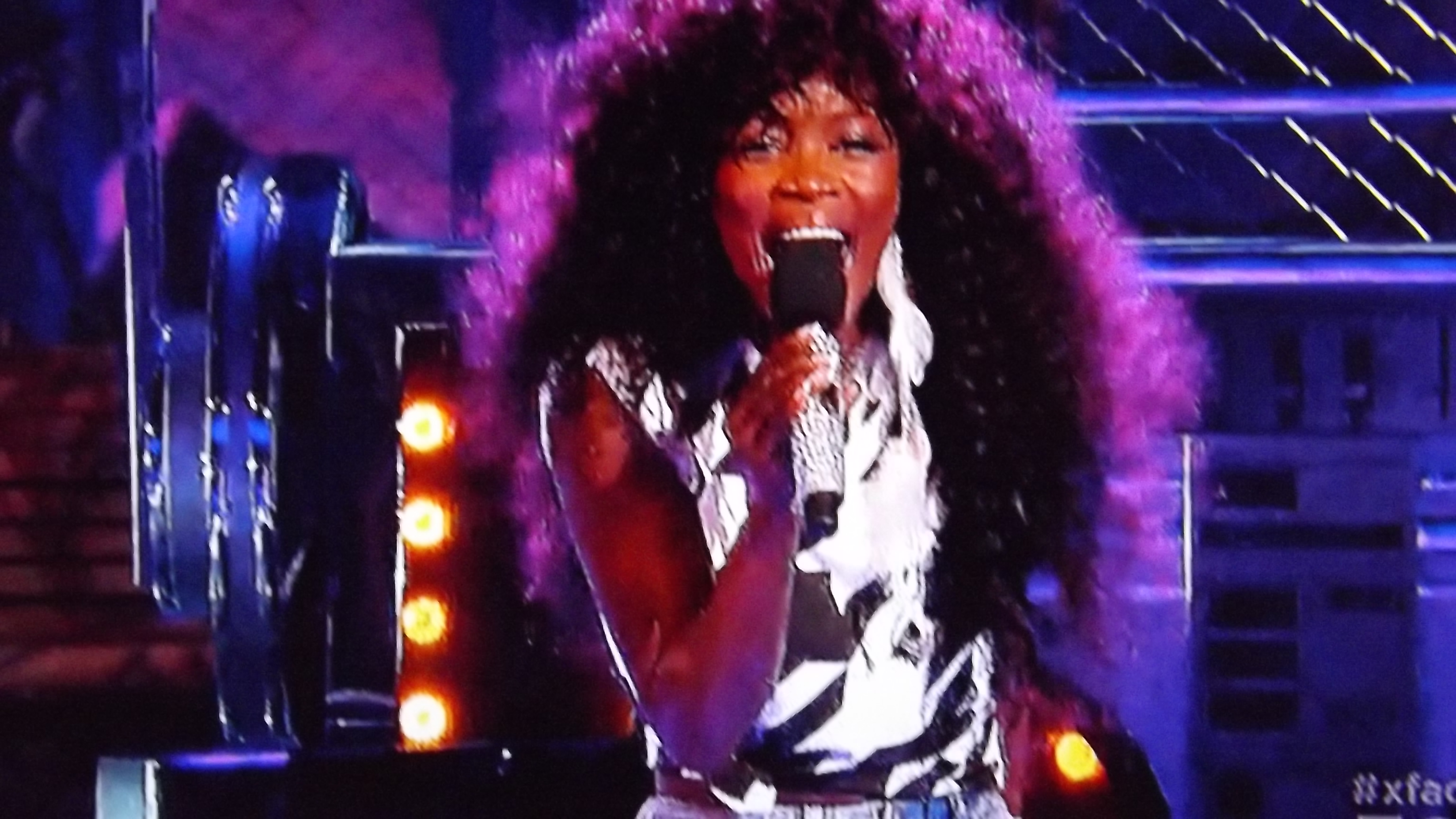 Ellona Santiago sang “I Wanted To Dance with Somebody.” Her performance was great and she looked good. She has a great voice and she doesn’t need the background dancers. Her voice commands the room.